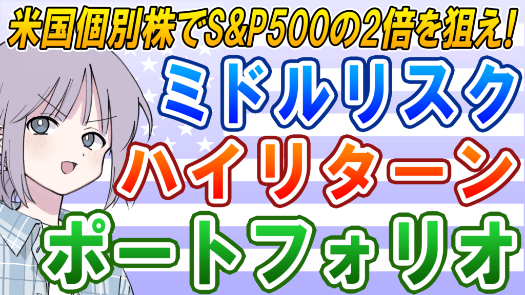 リスクはS&P500より低く、リターンはS&P500の2倍を狙う、ミドルリスクハイリターンの米国個別株ポートフォリオ例を紹介します。